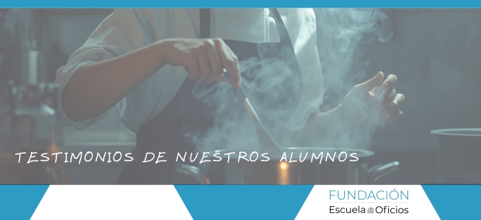 El periodo de prácticas fue “una experiencia muy enriquecedora”, porque le permitió pasar del aprendizaje teórico a la realidad del mundo laboral. Allí comprendió mejor el funcionamiento de un restaurante y la importancia de la rapidez, la organización y la capacidad de trabajar bajo presión. En su testimonio, destaca además que lo que más le ha marcado ha sido el compromiso de la escuela con las personas: “no se trata solo de enseñar un oficio, sino de dar oportunidades a quienes más lo necesitan”, especialmente a quienes encuentran más dificultades para acceder a una formación y abrirse camino.